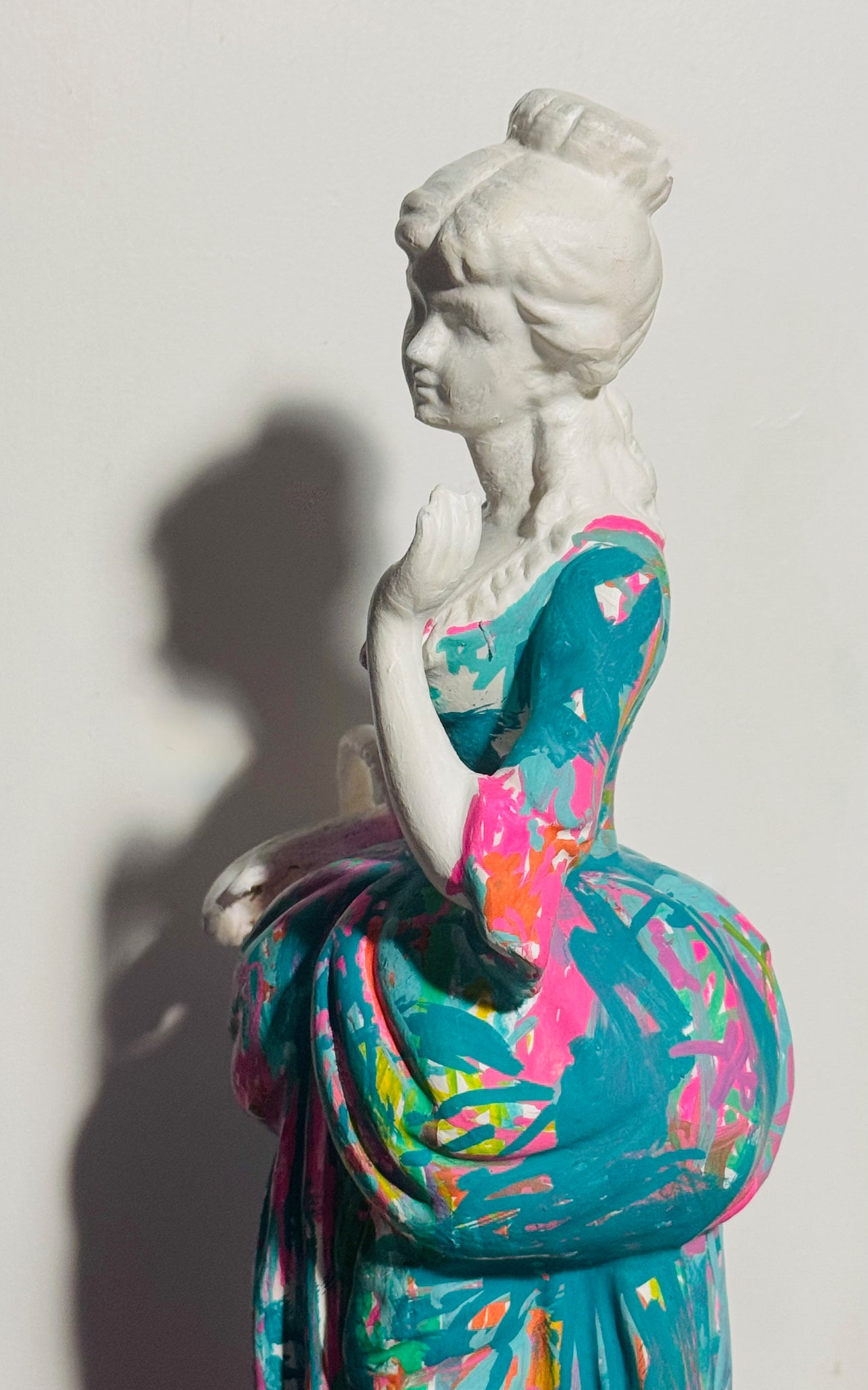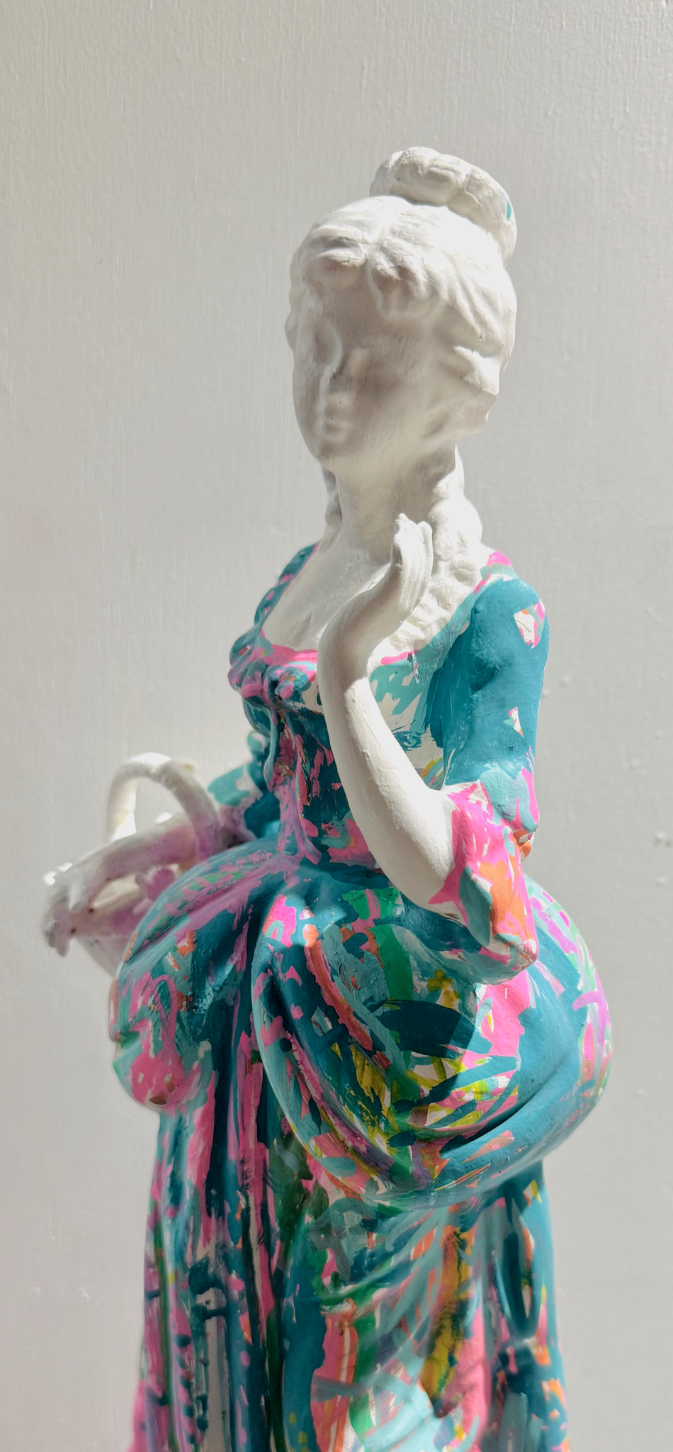 Reworked ceramic statue with acrylic, posca, enamel